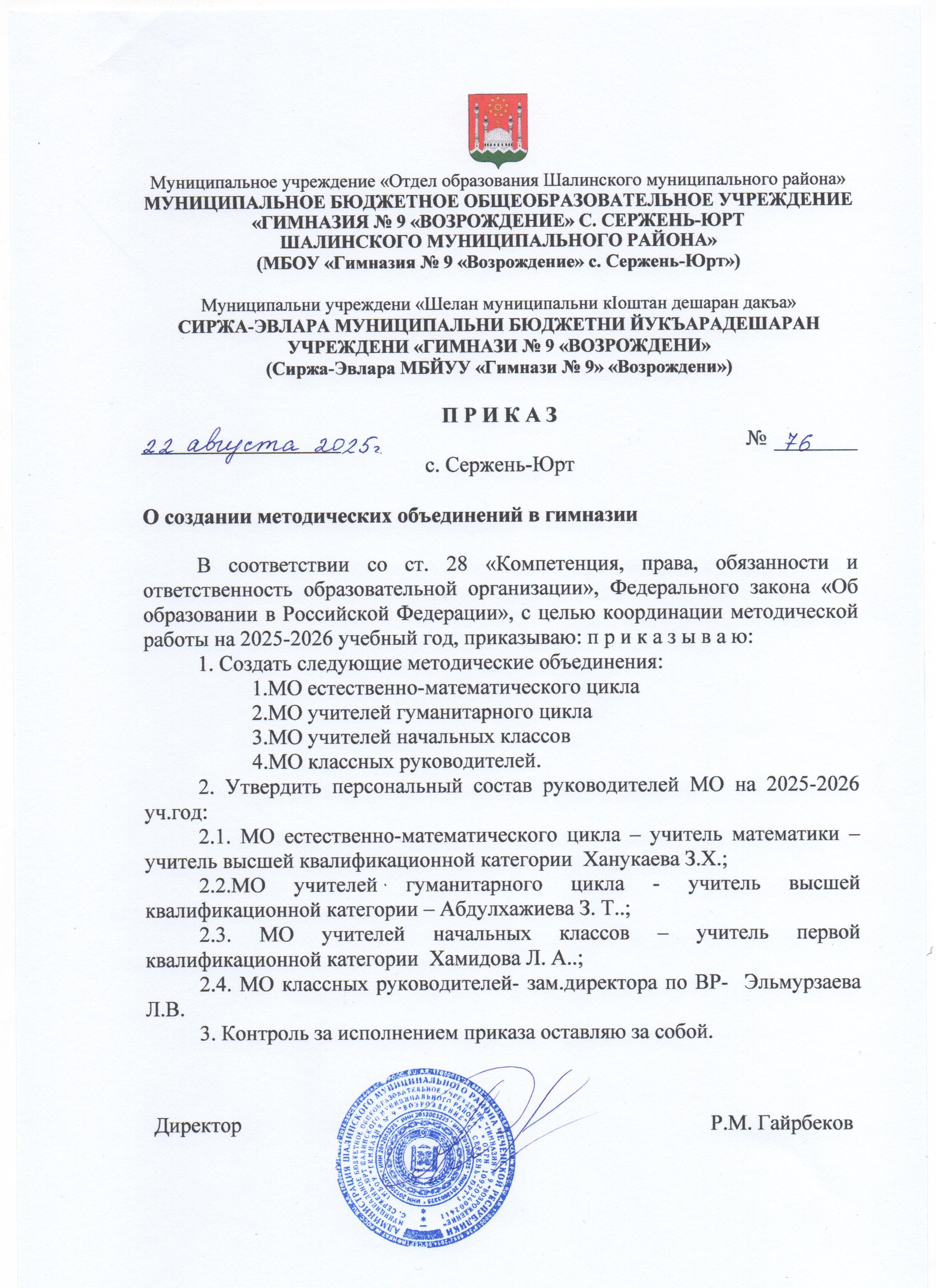 Приказ Муниципального учреждения «Отдел образования Шалинского муниципального района от 24 марта 2025 г. № 76-ОД «О внесении изменений в Правила приема на обучение по образовательным программам начального общего, основного общего и среднего общего образования в муниципальные общеобразовательные организации Шалинского муниципального района»