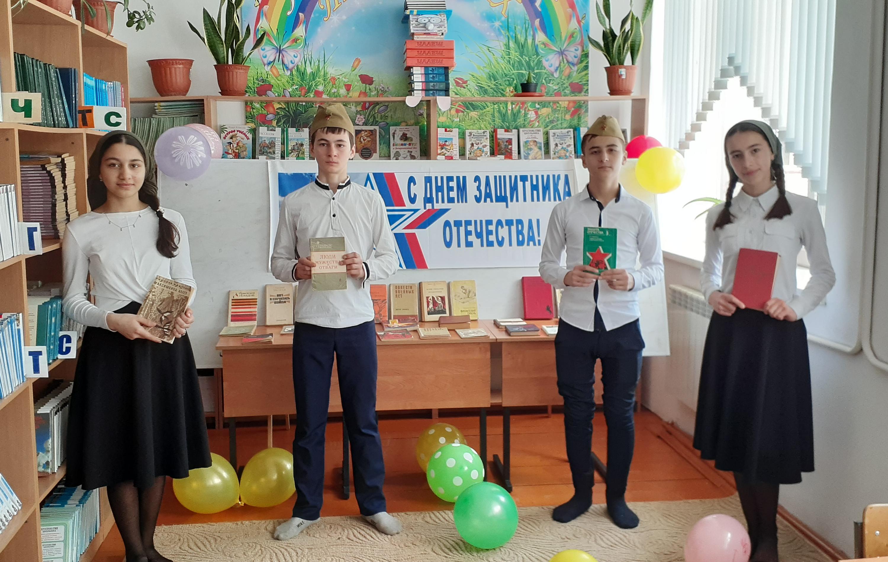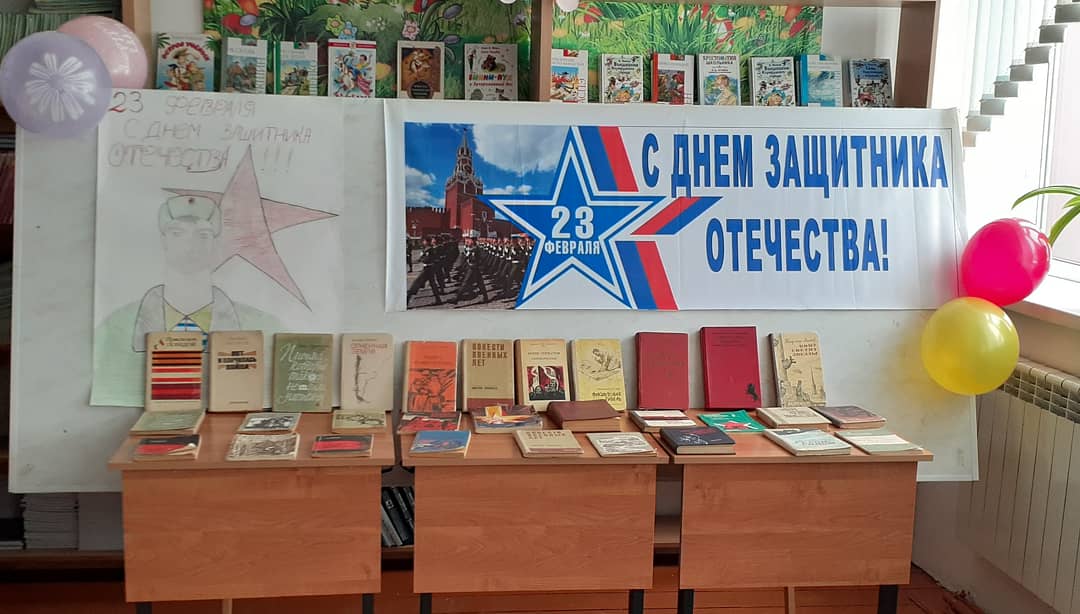 Книжная выставка посвященная Дню Защитника Отечества - провела библиотекарь Гайрбекова Р.М.