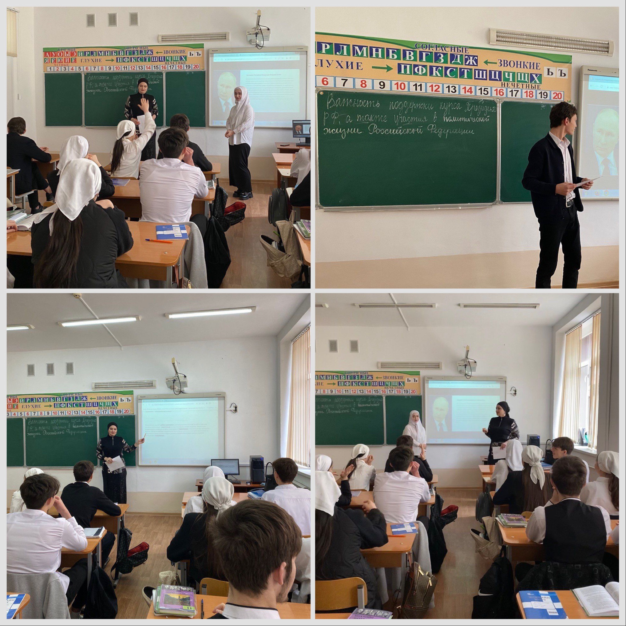 Отделом в Шалинском районе УФСБ России по Чеченской Республике совместно с МУ «Отдел образования Шалинского муниципального района Чеченской Республики» проведено профилактическое мероприятие в МБОУ «Гимназия № 9 «Возрождение» с.Сержень-Юрт» на тему: «Важность поддержки курса Президента РФ, а также участия в политической жизни Российской Федерации».