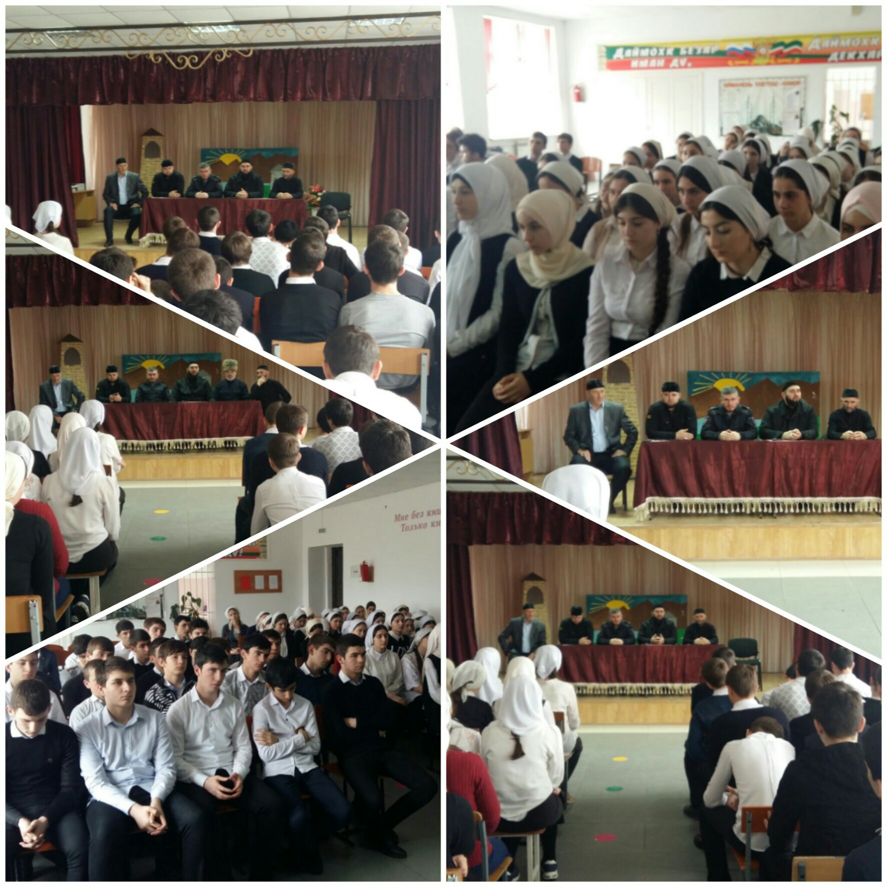 17.02.2018В рамках реализации Единой Концепции духовно-нравственного воспитания подрастающего поколения в ЧР в МБОУ «Гимназия №9 «Возрождение» с.Сержень-Юрт» сегодня 17.02.18г. состоялось встреча старшеклассников с представителями правоохранительных органов и духовенства района