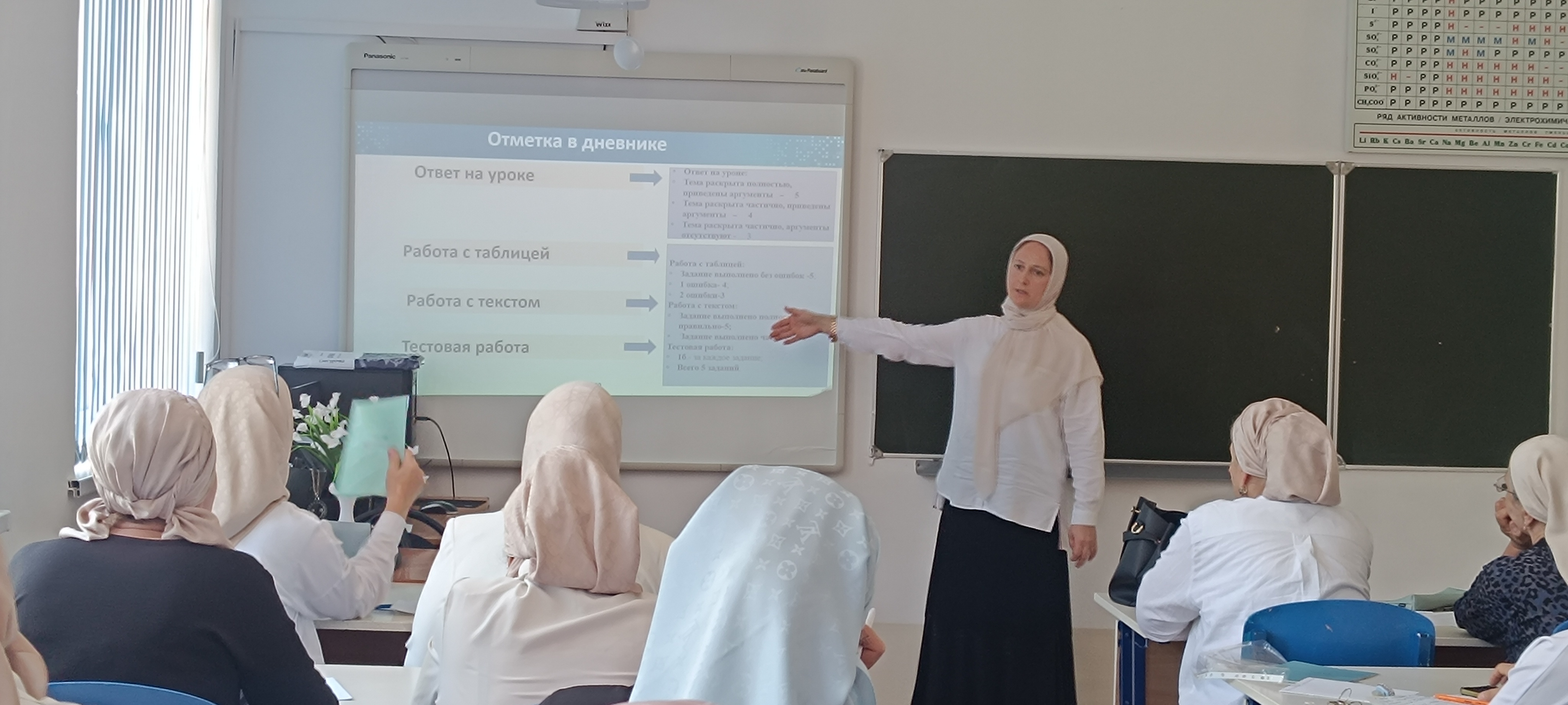 02.09.2025В рамках реализации федерального проекта «Педагоги и наставники» национального проекта «Молодежь и дети» в МБОУ «Гимназия№9 «Возрождение» с. Сержень-Юрт» 02.09.2025г. состоялся методический семинар для педагогов на тему «Формирование предметных, метапредметных и личностных результатов в ходе учебного занятия» . Совместно с региональным методистом Абдулхажиевой Зайной Тепсуркаевной учителя обсудили современные подходы к организации урока, позволяющие достигать не только образовательные, но и воспитательные цели. В центре внимания были вопросы формирования предметных, метапредметных и личностных результатов урока. Педагоги проработали практические кейсы и методические приемы, которые помогут сделать урок более эффективным и современным. Особое внимание уделялось практическим инструментам развития у школьников критического мышления, коммуникативных навыков и личной ответственности.Учителя обменялись опытом применения технологий, способствующих развитию у детей не только знаний по предмету, но и универсальных учебных действий, необходимых в современном обществе. «Сегодня учителю важно не только дать знания, но и помочь ребенку научиться учиться, взаимодействовать, находить себя в разных ситуациях», — отметили участники семинара.