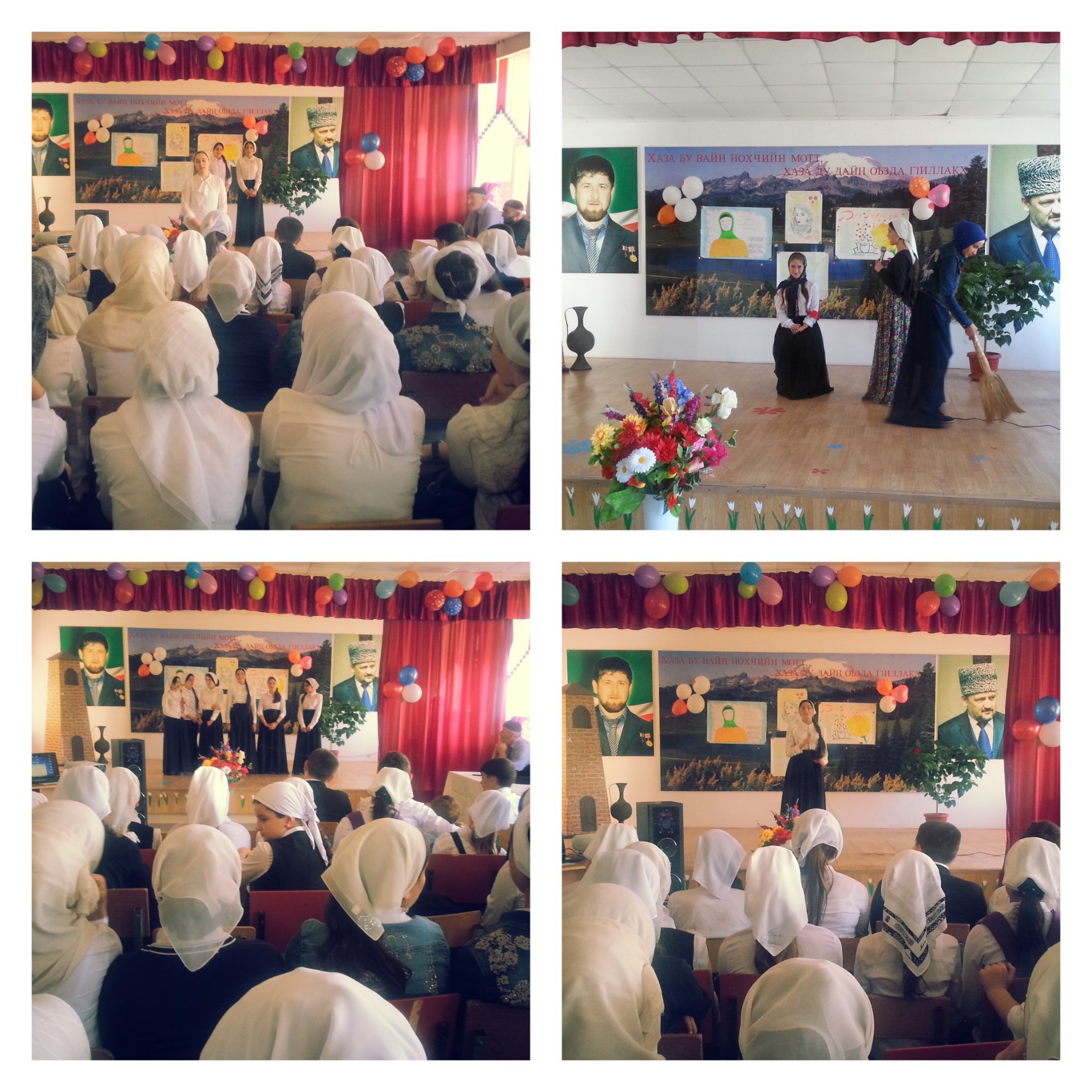 Мероприятие проходило в красочно оформленном зале (газеты, цветы, шары). На праздник были приглашены и родители учащихся (мамы).Во вступительной части мероприятия был просмотр слайдов, самостоятельно подготовленные учащимися, о женщинах Чечни, которые вошли в историю, об их мужественных подвигах, о героическом труде чеченских женщин. Эти слайды эмоционально раскрывали цели и задачи мероприятия. Учащиеся 9-х классов выразительно читали стихи на сцене, инсценировали сценки, рассказывали о подвигах чеченских женщин, об их гордости, верности. Призывали всех девушек Чечни строго соблюдать ту культуру, что оставили нам в наследство наши предки. В заключительной части мероприятия был проведен конкурс среди учащихся 8-11 классов на лучшее знание традиций и обычаев чеченского народа, исполнение песни, национального танца. Учащиеся были хорошо подготовлены к конкурсу, показали свои таланты.В завершение мероприятия с поздравительными словами выступил директор гимназии Мурадов В.Д.Такие мероприятия формируют установку на уважительное отношение к своим корням, воспитывают уважительное отношение к обычаям и традициям чеченского народа, воспитывают патриотизм, чувство ответственности за свою республику, страну.