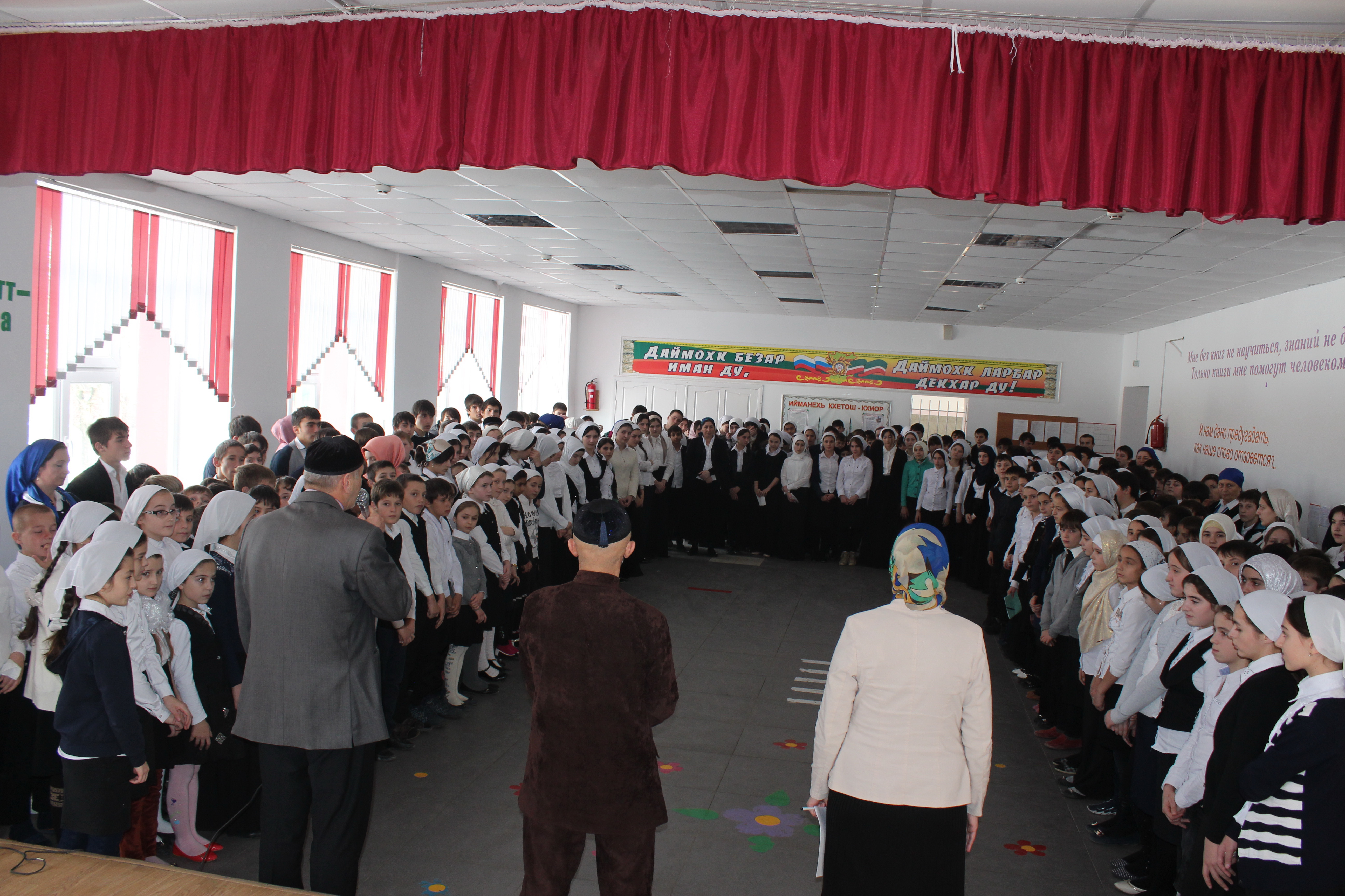 В МБОУ «Гимназия№9 «Возрождение» с.Сержень-Юрт 8 декабря была проведена общешкольная линейка для учащихся 5-11 классов, в связи с трагическими событиями 4 декабря. Организатором данного мероприятия был Ученический совет гимназии №9. На линейке выступили директор Мурадов В.Д. и педагог по ДНВ Магамадов И.Б. Они рассказали о мужестве и стойкости сотрудников МВД. В спецоперации погибли 14 сотрудников полиции - они предотвратили масштабные теракты. В завершении линейки был сделан дуа в честь погибших в ходе боевых действий 4 декабря.